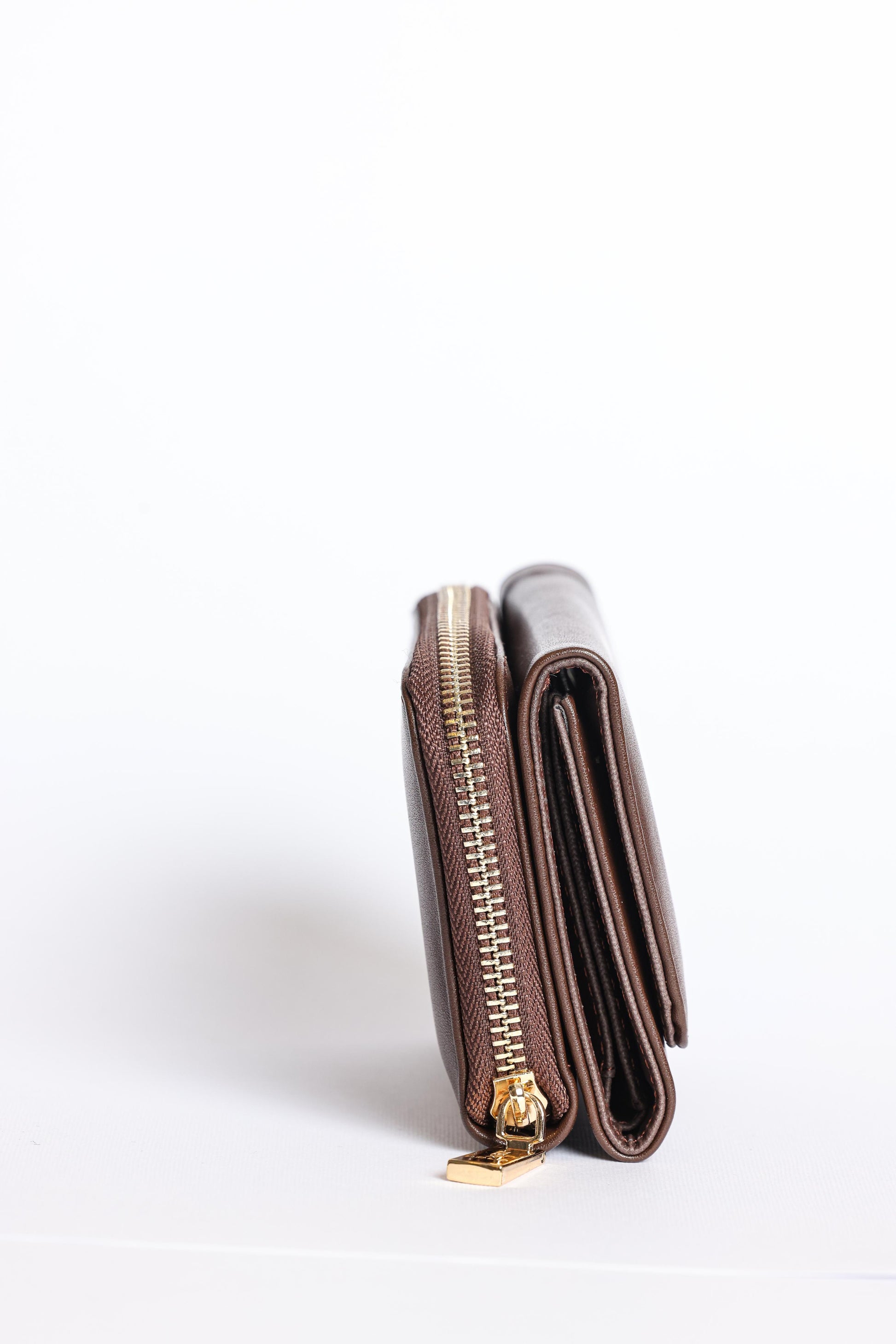Classic and compact, this LUNA WALLET blends elegance with everyday practicality. Crafted from smooth faux leather with fine stitching and gold-tone zipper detailing, it offers a polished and timeless design.